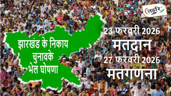 लहरि रूम (रांची) : झारखंड के निकाय चुनाव के लेल चुनाव प्रचार शुरू भ’ गेल अछि। झारखंड राज्य निर्वाचन आयुक्त अलका तिवारी द्वारा आई 27 जनवरी 2026 क’ एकटा प्रेस कॉन्फ्रेंस मे आधिकारिक घोषणा केलनि ।निर्वाचन आयुक्त केँ अनुसार झारखंड मे मतदान सोमदिन 23 फरवरी 2026 क’ होयत, जखन कि मतगणना 27 फरवरी क’ होएत। चुनाव आयोग के अधिसूचना के अनुसार नामांकन सँ ल’ क’ गिनती तक के सभ महत्वपूर्ण तिथि के अंतिम रूप द’ देल गेल अछि। चुनावक सब प्रक्रिया जिला निर्वाचन अधिकारी (नगर निगम) के माध्यम सँ लागू कैल जाएत।
