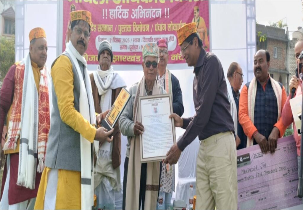 कार्यक्रमक शुभारम्भ विद्यापति दलान लग मंच पर बैसल अतिथि लोकनि आ विद्यापतिक चित्र पर पुष्पांजलि सँ भेल । परम्पराक अनुसरण करैत विद्यापतिक रचित “भगवती वंदना” (जय जय मैरवी असुर भयावणी) आ राष्ट्रगान सँ भेल । कार्यक्रम के औपचारिक शुरुआत अतिथि आ मंच के अधिकारी लोकनि द्वारा संयुक्त रूप सं दीप प्रज्वलित करय सं भेल। तखन पाग-शाल भेंट कय पाहुन लोकनिक स्वागत कयल गेल। महासचिव जयंत कुमार झा आजुक सम्पूर्ण कार्यक्रम पर चर्चा करैत उपस्थित अतिथि आ मैथिली प्रेमी के अभिवादन केलनि। तत्पश्चात डॉ. भीमनाथ झा द्वारा लिखित पुस्तक भावंजलि, साहित्य मूर्ति (हितनाथ झा द्वारा संपादित, झारखण्ड मैथिली मंच, रांची द्वारा प्रकाशित) विमोचन भेल । एहि पोथी पर डॉ. कृष्ण मोहन झा, प्रमोद कुमार झा, हितनाथ झा अपन विचार रखलनि। रूपा देवी विदेह साहित्य सम्मान 2025 प्रो महेन्द्र झा के संस्मरण पुस्तक “धात्री पात सन गाम” के लेल देल गेल छल | अध्यक्ष बिनय कुमार झा अतिथि लोकनिक स्वागत केलनि। मोहन झा परोसी पुरस्कार के लेल पुस्तक चयन प्रक्रिया के विस्तृत जानकारी देलनि । हितनाथ झा प्रशस्ति पत्र पढ़ि सम्मानपूर्वक प्रो महेन्द्र केँ भेंट केलनि । कार्यक्रम मे मुख्य अतिथि शशि प्रकाश झा, आई. ए.एस. (निदेशक, राष्ट्रीय स्वास्थ्य मिशन), डॉ. विद्यानाथ झा, विदित आ केदार कानन पुस्तक पर चर्चा करैत प्रो महेन्द्र केँ उनके उत्कृष्ट कार्य आ सम्मान हेतु बधाई देलनि । प्रो महेन्द्र आभार व्यक्त कयलनि । मुख्य अतिथि शशि प्रकाश झा, अध्यक्ष बिनय कुमार झा, महासचिव जयंत कुमार झा, एवं कोषाध्यक्ष संतोष कुमार मिश्र द्वारा प्रो. महेंद्र केँ 35 हजार नकद , पाग, शाल, आ स्मृति चिन्ह प्रदान कयल गेल । अंतिम सत्र मे पंचांग आ कैलेंडर के विमोचन मे मुख्य अतिथि कोल इंडिया लिमिटेड के महाप्रबंधक ललित कुमार चौधरी के संग मंच के पदाधिकारी लोकनि कयलनि। मंच केँ संरक्षक आ पूर्व पार्षद अरुण कुमार झा अतिथि लोकनिक स्वागत केलनि। प्रेम चन्द्र झा पंचांग आ पंचांगक उपयोगिता पर विस्तृत जानकारी देलनि । जयंत कुमार झा अपन अनुभव आ विचार दर्शक के संग साझा केलनि। धन्यवाद ज्ञापन भरतेन्दु कुमार झा कयलनि । मंच के संचालन बद्रीनाथ झा आ ब्रज कुमार झा केलनि। अंत मे लोक सब पारंपरिक भोजन चुरा, दही, गुड़, आ तरकारी के आनंद लेलनि ।