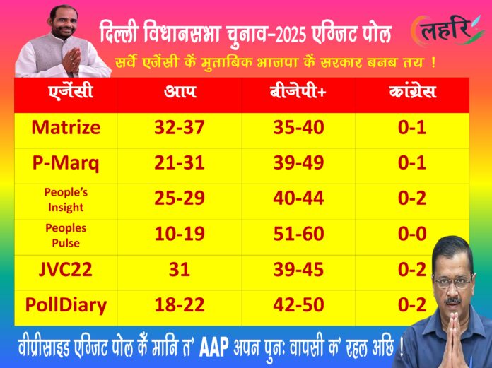 जं सत्य साबित भेल एग्जिट पोल कें संभावना त’ 27 साल बाद भाजपा करत दिल्ली मे वापसी : बनत डबल इंजन कें सरकार !