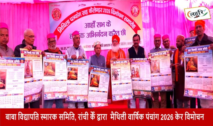 बाबा विद्यापति स्मारक समिति, रांची केँ द्वारा मैथिली वार्षिक पंचांग 2026 केर विमोचन