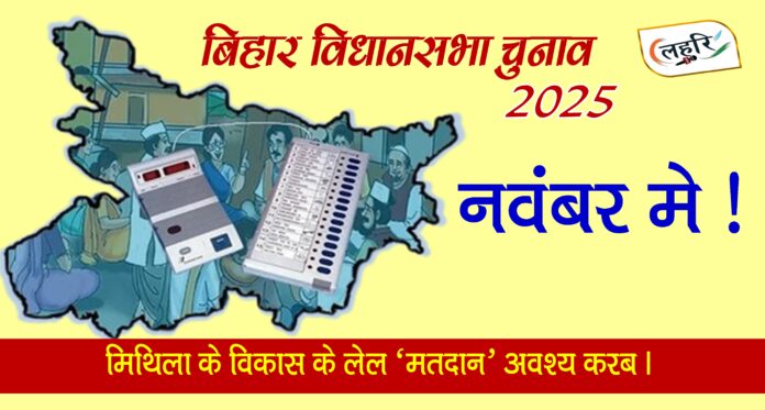 लहरि रूम (पटना) : एहि साल बिहार मे विधानसभा चुनाव होबय वाला अछि। मीडिया सूत्र आ चुनाव आयोग के क्रियाशीलता सँ खबरि चर्चा मे अछि जे एहि मासक अंत या अगिला मासक आरम्भ मे चुनावक तारीख कें घोषणा कैल जा सकैत अछि । संभावना अछि जे नवंबर केँ पहिल आ दोसर सप्ताह मे नव बिहार विधानसभा के चुनाव लेल मतदानक तिथिक घोषणा हेबाक सम्भवना अछि । आशा अछि जे तीन चरण मे मतदान होयत। संभावना अछि दिया-बाती आ छठि पाबनि लगा क’ चुनावक तिथि होइ। कारण वर्तमान विधानसभा के कार्यकाल 22 नवंबर 2025 क’ समाप्त भ’ जायत आओर चुनाव आयोग के ओहि तारीख सँ पहिने चुनाव प्रक्रिया कोनो परिस्थति मे पूर्ण करय पड़त।