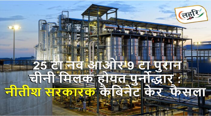 लहरि रूम (पटना) : बिहार मे नीतीश कुमार केँ नेतृत्व मे एनडीए केँ नव सरकारक पहिल कैबिनेट बैसार आई (मंगलदिन) भेल। अनेको फैसला लेल गेल आ 10टा प्रमुख प्रस्ताव केँ स्वीकृति देल गेल देल गेल। मंत्रिमंडल राज्य मे 25टा नव चीनी मिल केँ स्थापना आ 9 टा पुरान बंद मिल केँ फेर सँ प्रारम्भ करबाक महत्वपूर्ण फैसला लेलक। बिहार मे कहियो 33 चीनी मिल छल, जाहि मे पैघ पैमाना पर चीनी केँ उत्पादन होइत छल। सम्भवना अछि जे कुसियारक पैदवार सँ कृषक लोकनि के आओर मिल खुलला सँ बेरोजगार लोकनि के रोजगार भेटबाक उम्मीद जागि गेल अछि।